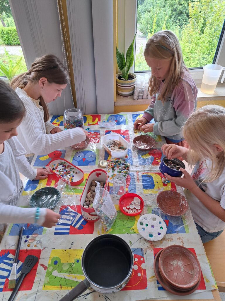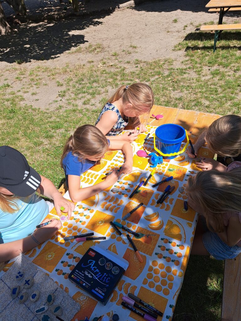 In den Sommerferien hatten wir viel Zeit zum Spielen, Basteln und Lachen. Kieselsteine wurden von uns bunt bemalt, Spiele selbst gebastelt, Gipsformen hergestellt und ein Tierparkbesuch durfte auch nicht fehlen. An unsere neuen Erstklässler haben wir ebenfalls gedacht und für sie herzliche Willkommensplakate angefertigt.