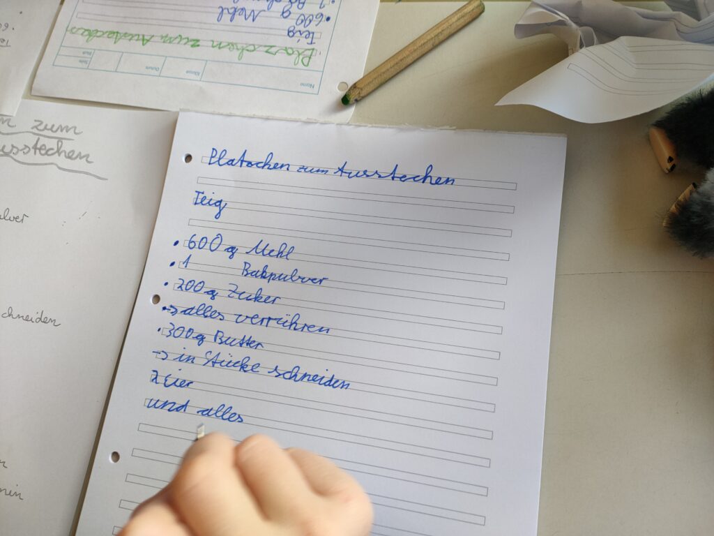 … oh es riecht so fein aus dem Ofen. Im Advent haben wir wieder gemeinsam Plätzchen gebacken. Im Anschluss daran, hat sich jeder ein Rezept ausgesucht und abgeschrieben.