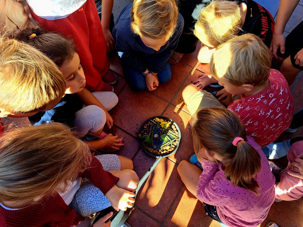 Es ist sehr warm am Anfang des Schuljahres. Wir bauen Insektentränken für den Schulhof und weil uns auch sehr warm ist, gehen wir ins Freibad.