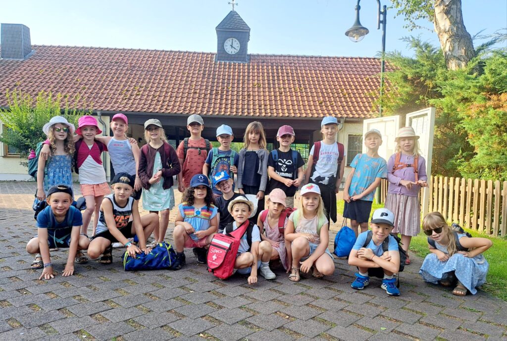 Am 3. August war es so weit: Wir wurden eingeschult. In St. Katharinen haben wir den Tag mit einem gemeinsamen Gottesdienst gestartet. Unsere Paten haben für uns gesungen und eine Geschichte über Jesus vorgespielt.
